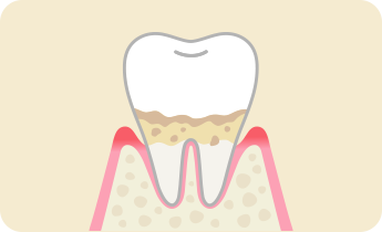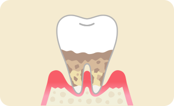 歯を支える骨(歯槽骨)がほとんど失われ、歯根が露出した状態です。歯ぐきが腫れて痛みが強く、歯がグラグラして最後には抜け落ちてしまうこともあります。この段階になる前に、定期的なケアで早期発見・早期治療を心がけましょう。