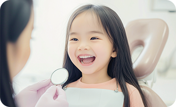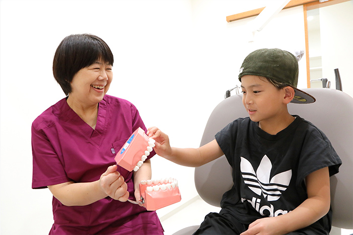 お子様が不安にならないよう、その子の年齢や性格に応じて対応し、無理なく治療に臨めるようサポートします。むし歯治療や定期検診、フッ素塗布まで、どんなことでもお気軽にご相談ください。